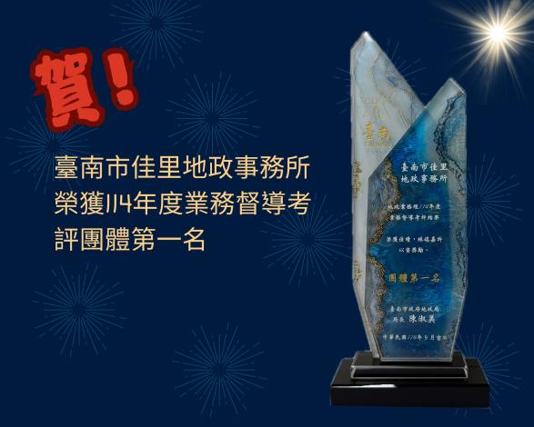 在 114 年度的考核中,本所再度脫穎而出,榮獲團體排名第 1 名!